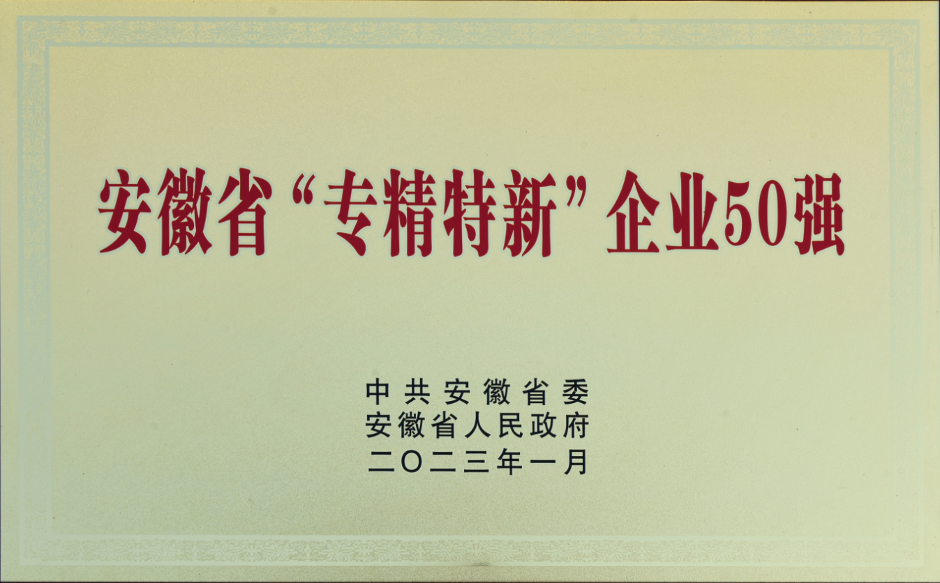 國(guó)家級(jí)專精特新重點(diǎn)“小巨人”企業(yè)、國(guó)家級(jí)高新技術(shù)企業(yè)、安徽省“專精特新”企業(yè)50強(qiáng)